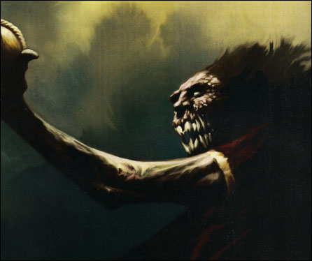 Quando a última elite de guerreiros de Gilead suplica por uma morte rápida, seu monstruoso rei morto-vivo ergue uma taça de vinho para eles num brinde zombeteiro. Ele veste seus trajes de gala, mas sobre a testa cinzenta e decomposta não está a coroa do Mundo Total, mas um aro de ferro engastado com pedras vermelhas e negras. Quando ri, mostrando os dentes pontiagudos que enchem sua mandíbula como lápides irregulares, um verme sai de seu nariz. A corte real de Gilead! — grita o monarca. "Que ela tenha uma longa putrefação!"